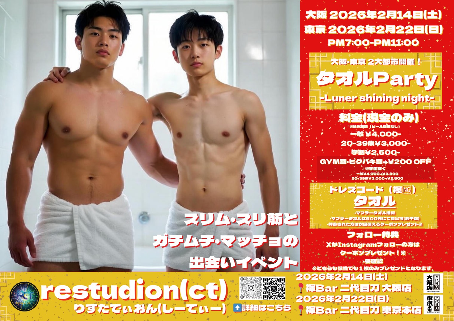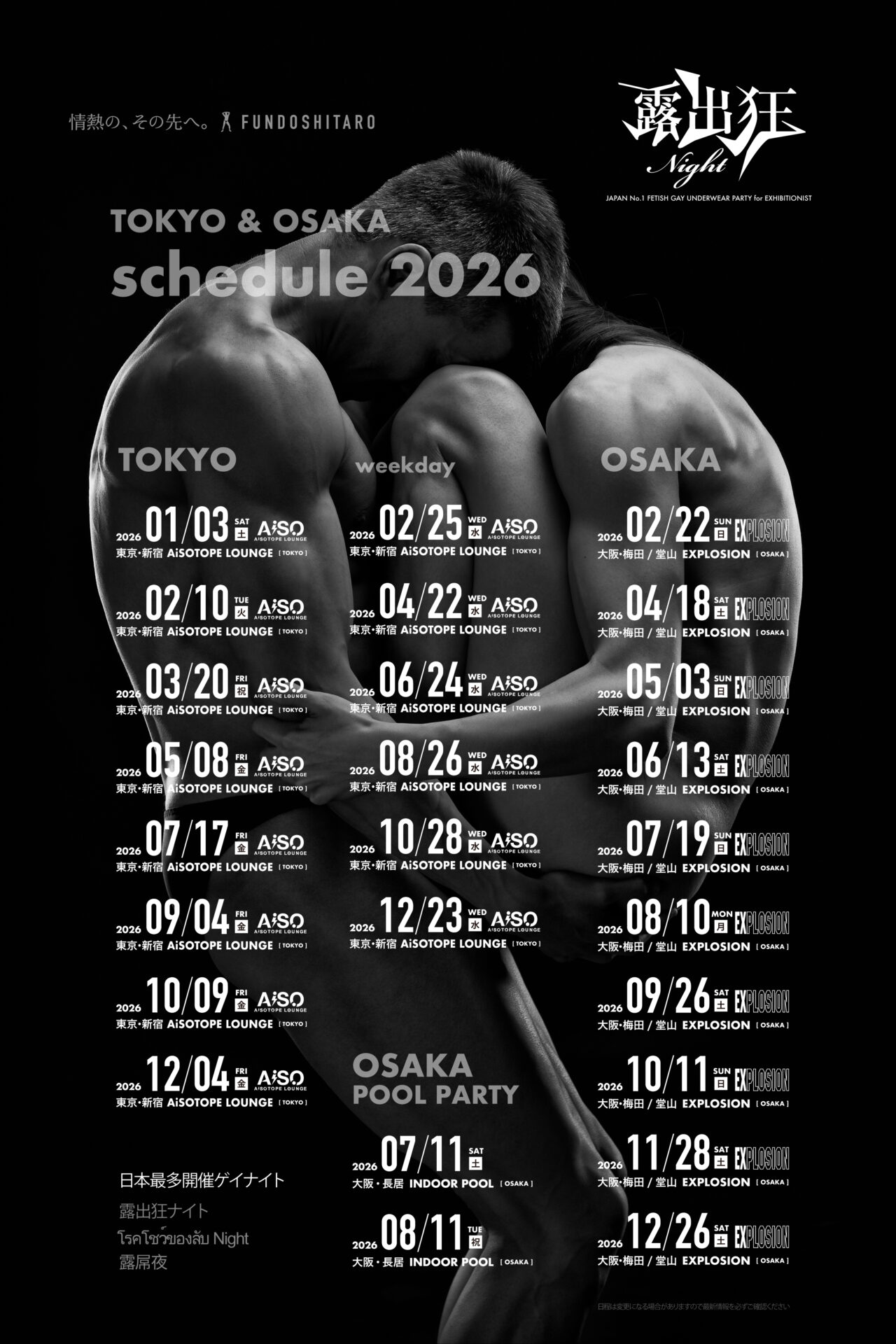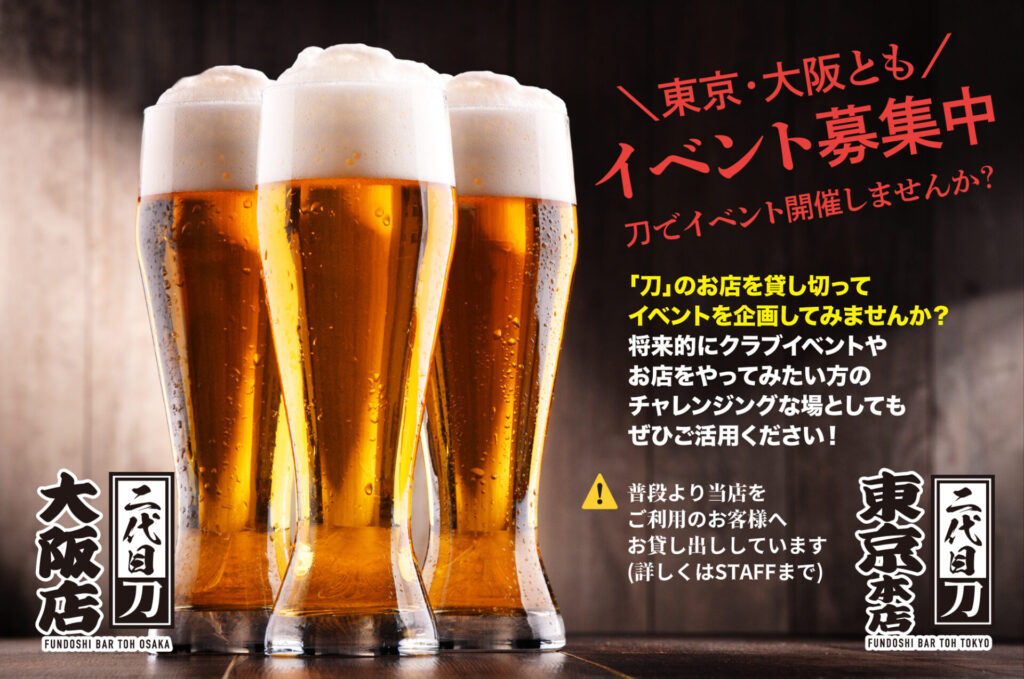 FUNDOSHITARO'S BARS, EVENTS, MASSAGE SALONS for GAY in Tokyo/Osaka/Kokura